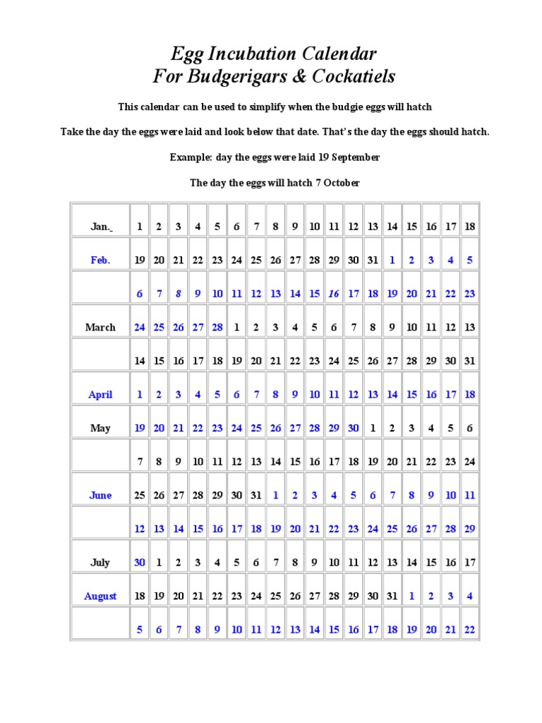 Egg Incubation Calendar For Budgies And Cockatiels Dinosaurs Ethology
