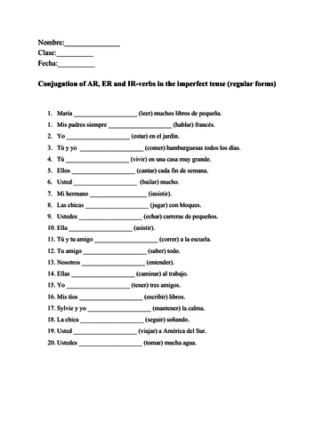 Spanish Er And Ir Verb Conjugation Practice Line Upon Line