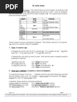 Tener Conjugation Chart Present Tense لم يسبق له مثيل الصور