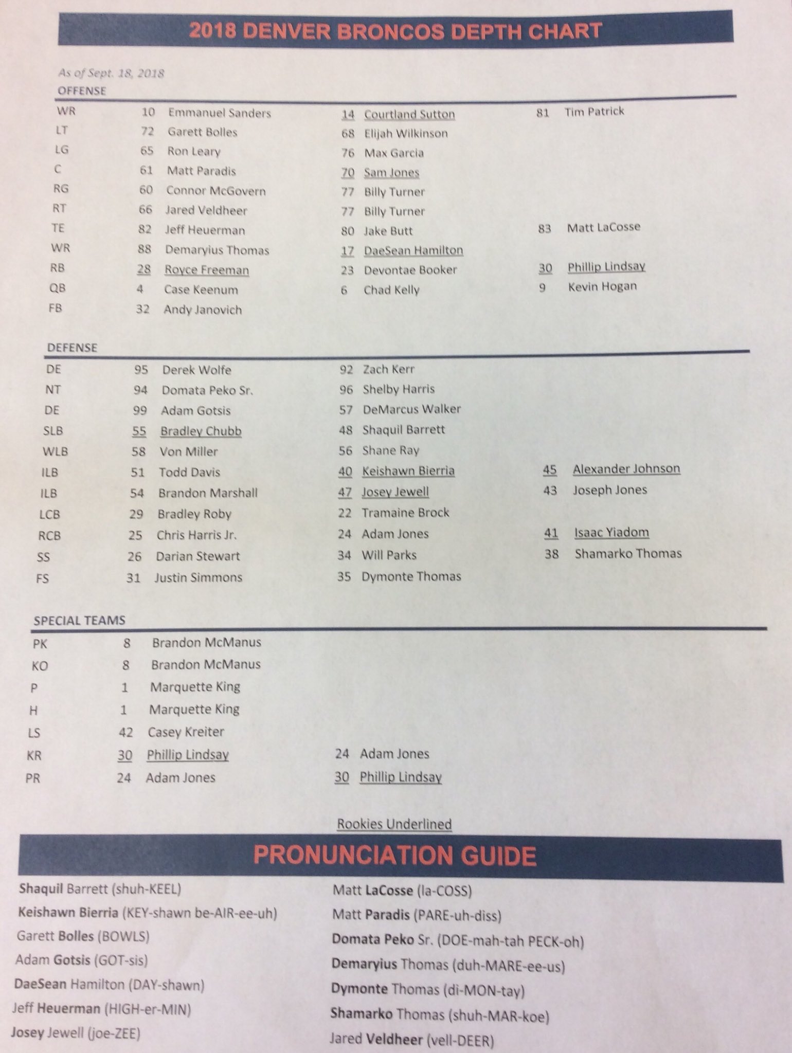 Denver Broncos Depth Chart 2018 Official Roster Updated