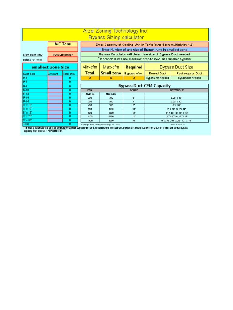 Arzel Zoning Bypass Calculator 2 Duct Flow Gas Technologies