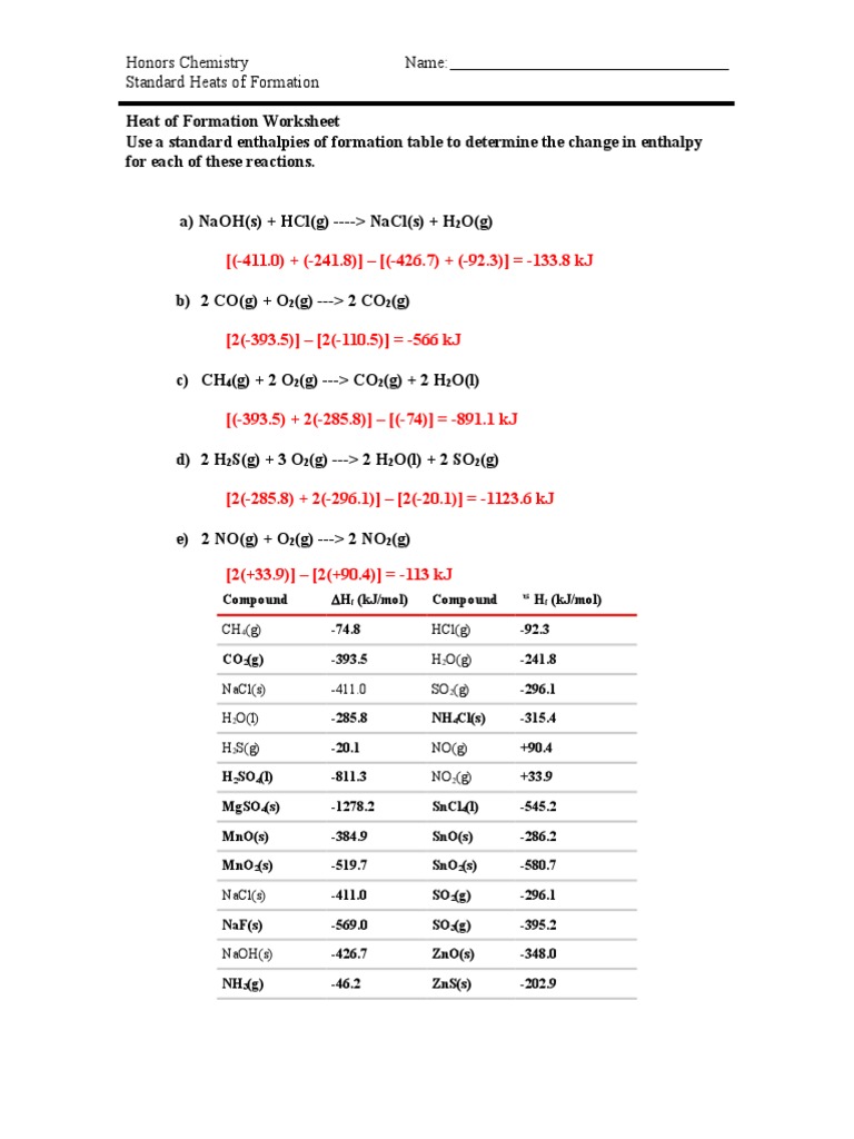 Heats Of Formation Worksheet Key Thermodynamics Chemical Compounds Free 30 Day Trial Scribd