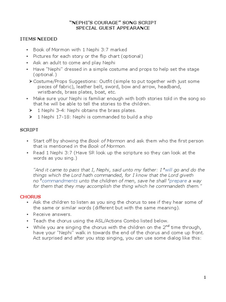 Nephi S Courage Script Nalani Mormons Religion And Belief