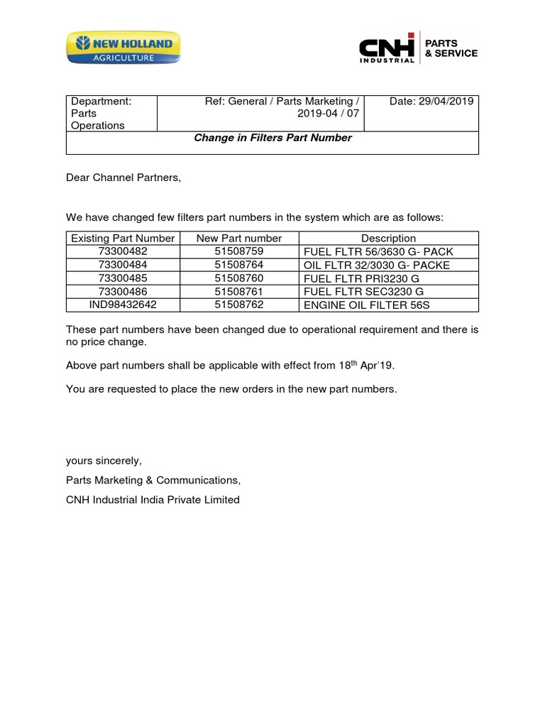 Circular Filters Part Number Change Pdf