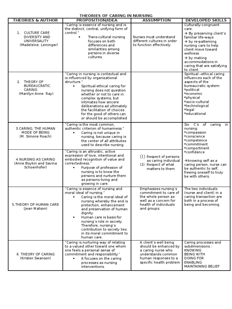 Theories Of Caring In Nursing Self Nursing Free 30 Day Trial Scribd