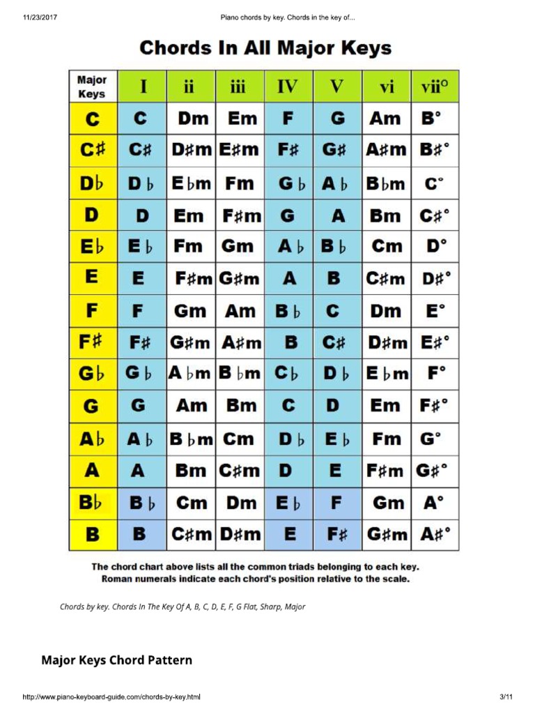 Piano Chords By Key Chords In The Key Of