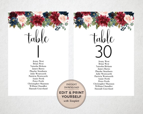 Table Seating Chart Editable Seating Chart Editable Wedding