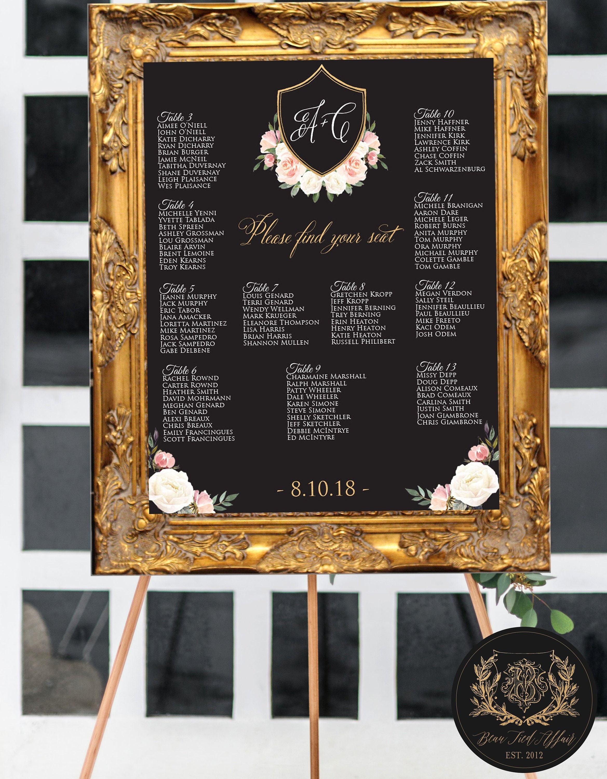 Printable Blush Floral Wedding Seating Chart Monogram Floral Etsy