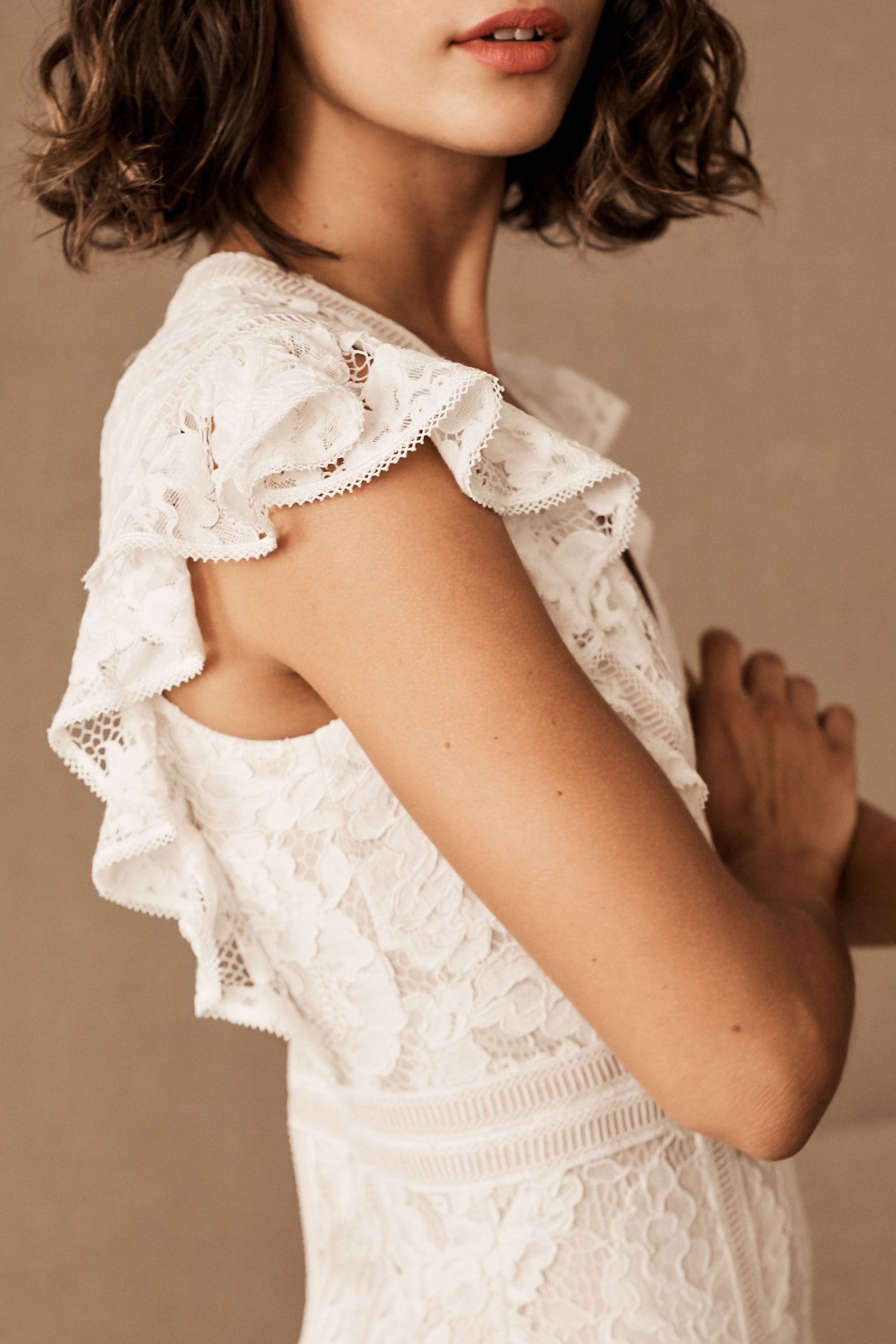 Tadashi Shoji White Lace Bhldn Mina Gown Ivory Feminine Wedding