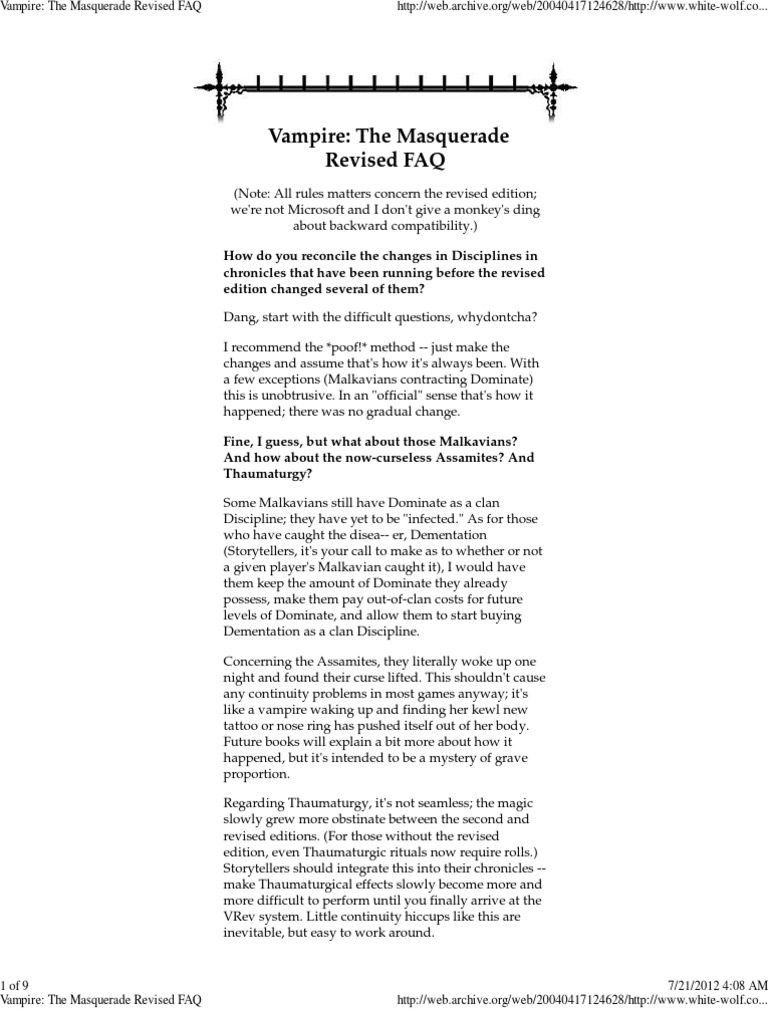 Errata For Vtm One World Of Darkness