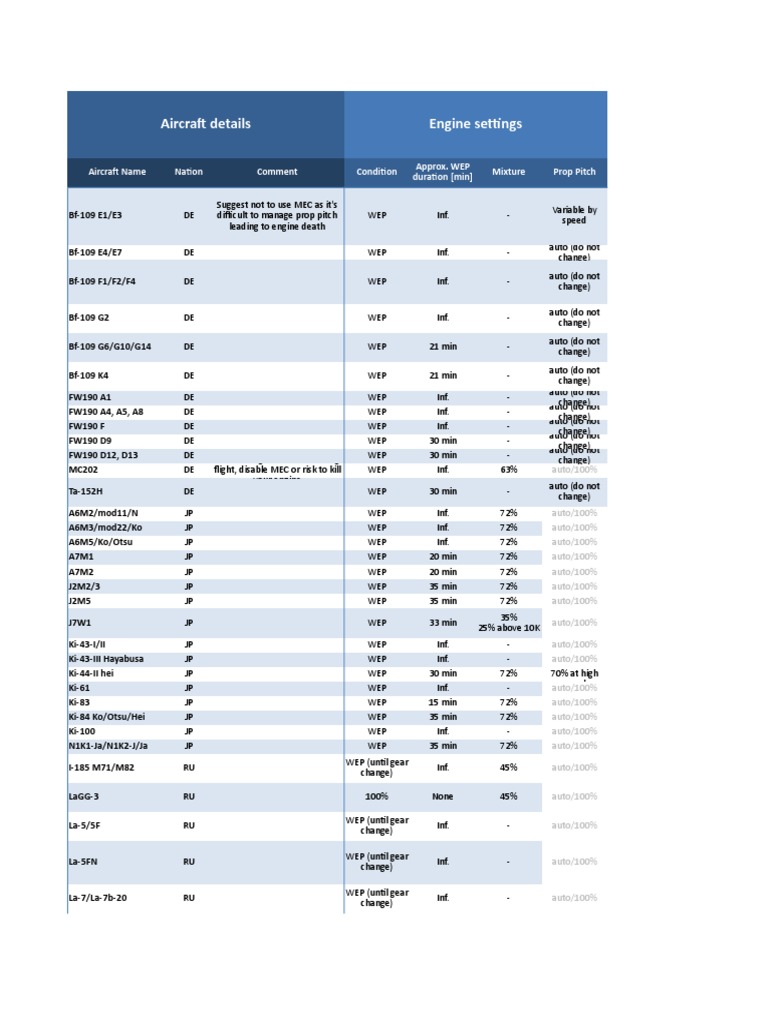 War Thunder Mec Chart